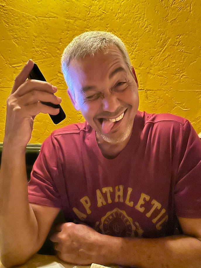 He was fine. He was messaging me from the hospital, where he was waiting with his mom for her regularly scheduled dialysis treatment. Power had been restored in the area surrounding the hospital. He had a signal as long as he was there. I cried with relief when I saw his message come through while I was waiting to board my plane. The first thing he sent me was a selfie of him winking at me, the way he always does when he laughs.